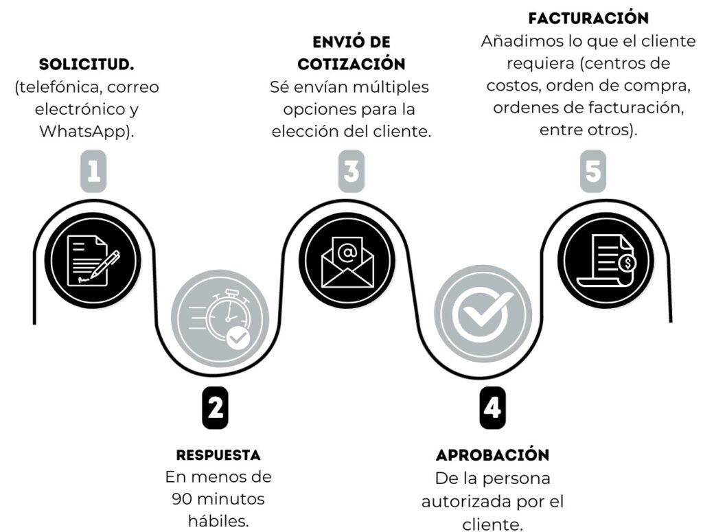 En este modelo se asigna un equipo dedicado que dará respuesta a sus solicitudes vía email para gestionar sus viajes. Establece el cobro de una tarifa administrativa regulada por la ley 336 de 1996.